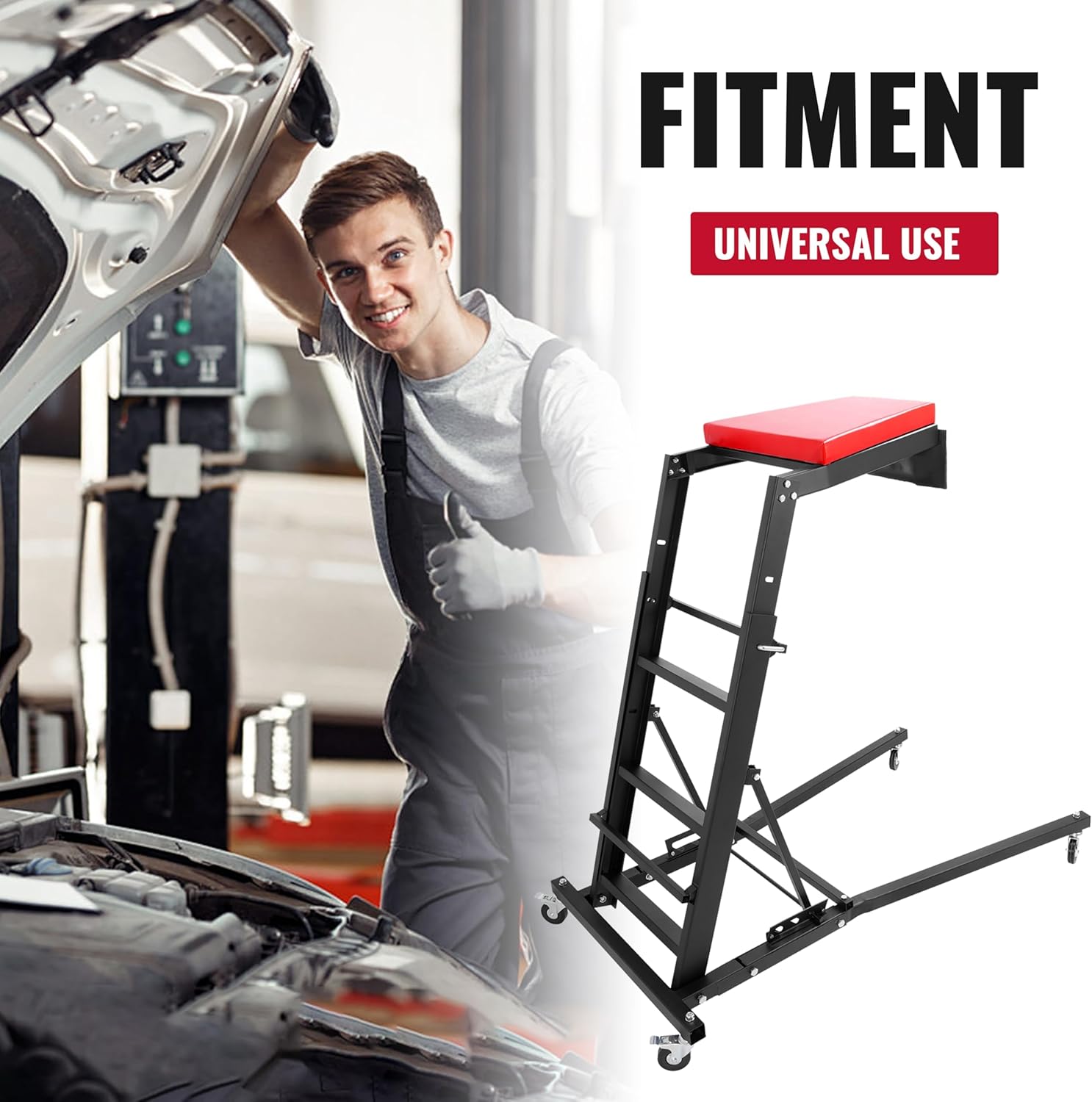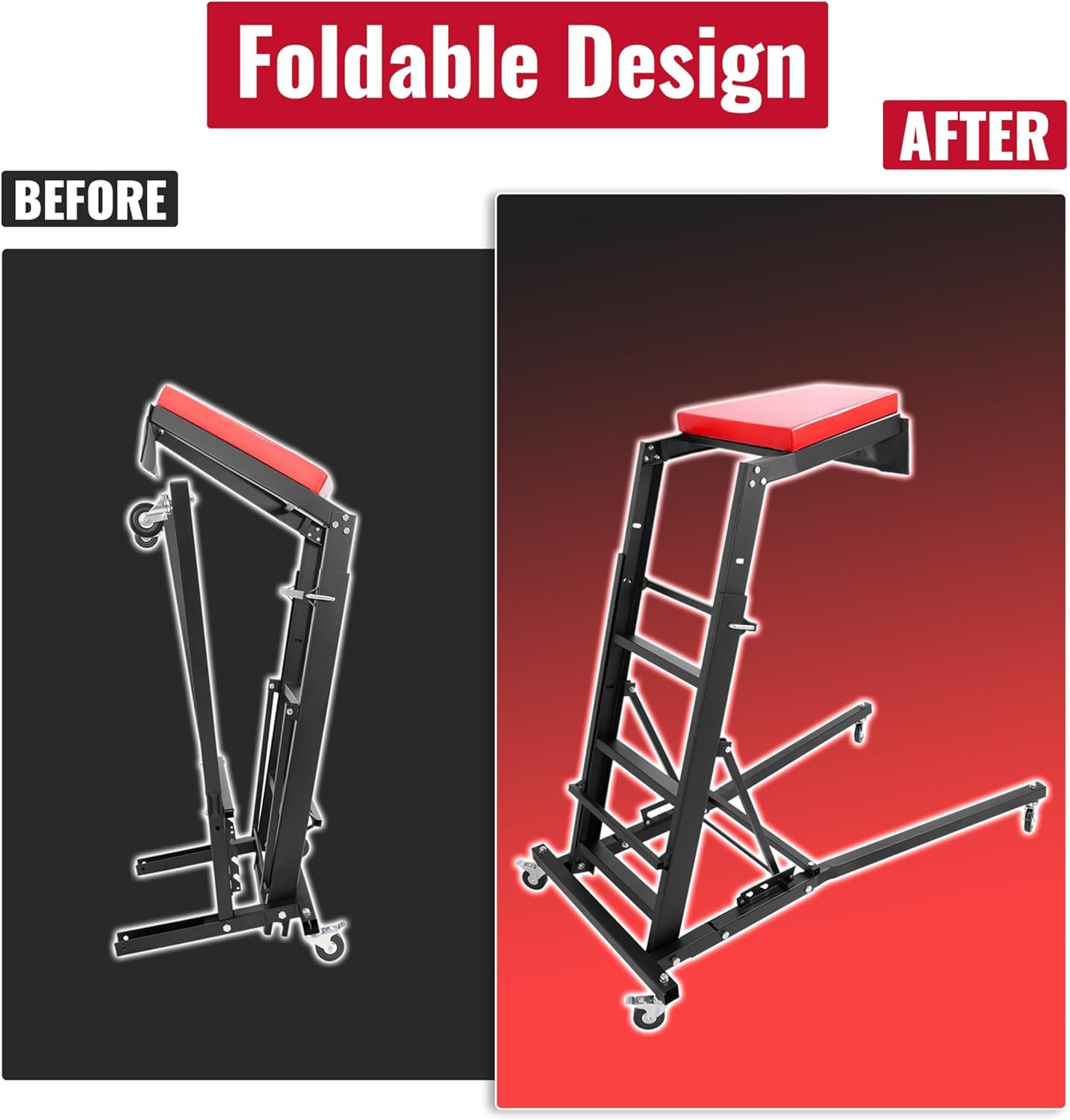 - Foldable Design: Tight on space in your garage or workshop? No problem. Our creeper boasts a convenient foldable design, allowing you to easily store it away when not in use. Say hello to a clutter-free workspace