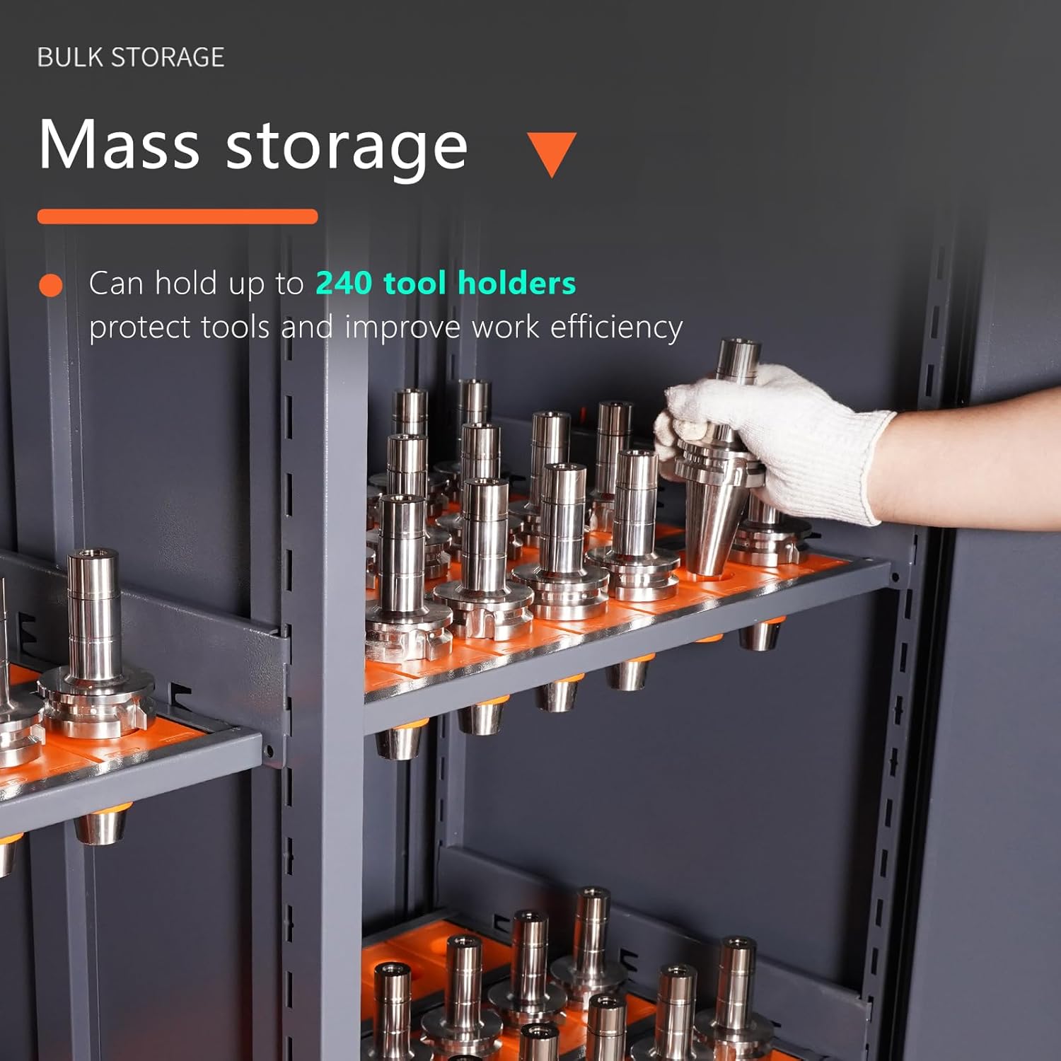 - HIGHER QUALITY: LYREIGN CNC Tool holder Cabinet adopts SPCC high-quality 2.0MM cold-rolled steel square tube, pickling and phosphating treatment, waterproof and scratch-resistant. The professional CNC tool rack is made of new material ABS, which has a buffering effect and can reduce the collision between the handle and the sleeve. Sturdy and durable, it can withstand heavy loads and frequent use, meeting the needs of long-term use and storage.