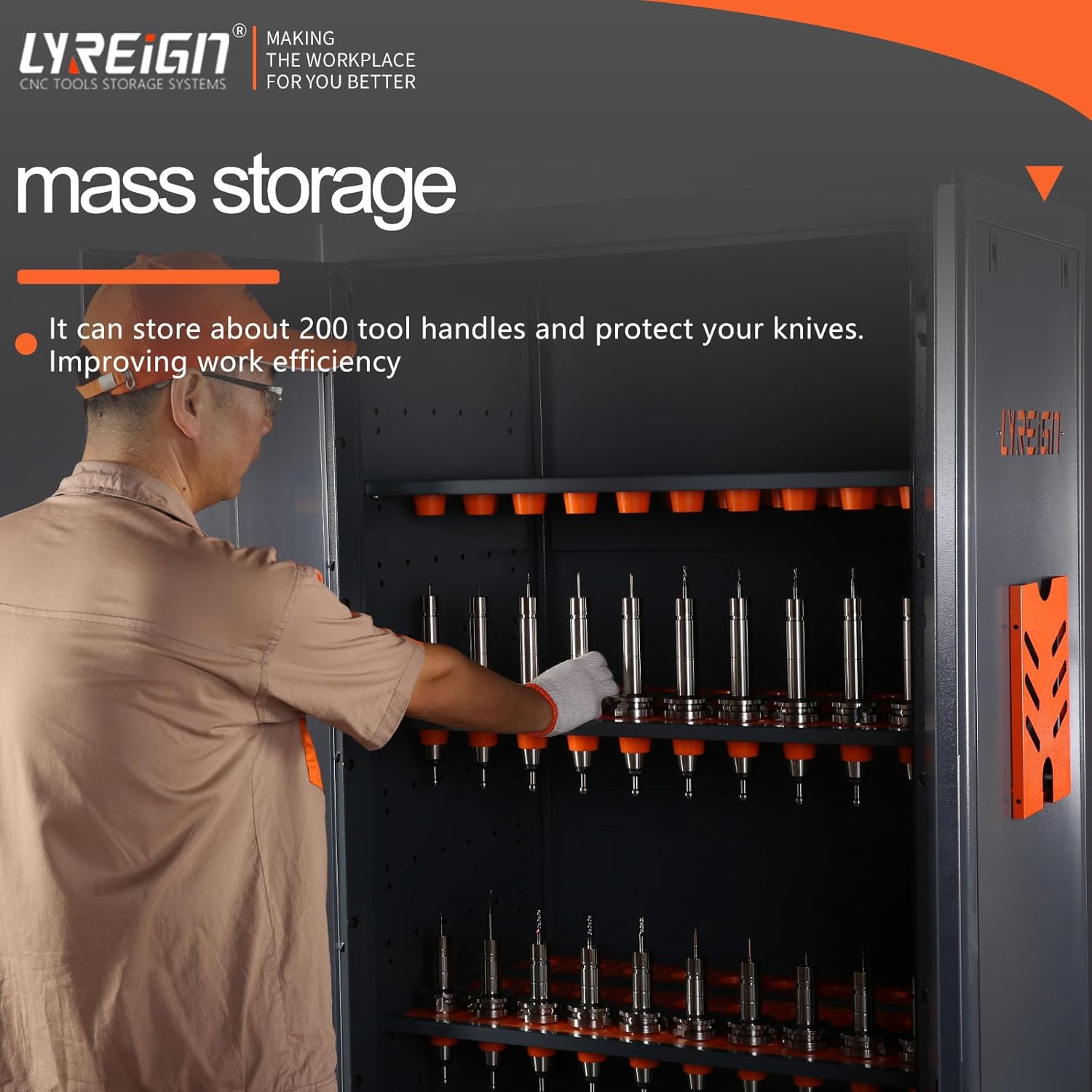 - HIGHER QUALITY: LYREIGN CNC Tool holder Cabinet adopts SPCC high-quality 2.0MM cold-rolled steel square tube, pickling and phosphating treatment, waterproof and scratch-resistant. The professional CNC tool rack is made of new material ABS, which has a buffering effect and can reduce the collision between the handle and the sleeve. Sturdy and durable, it can withstand heavy loads and frequent use, meeting the needs of long-term use and storage.
