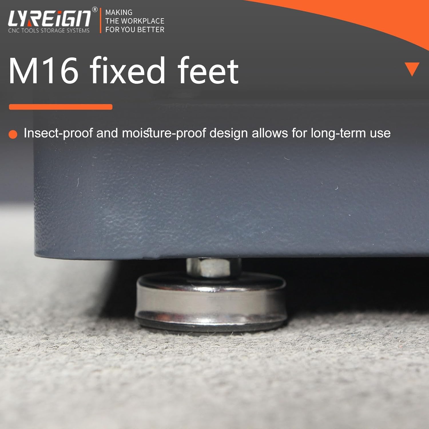 - HIGHER QUALITY: LYREIGN CNC Tool holder Cabinet adopts SPCC high-quality 2.0MM cold-rolled steel square tube, pickling and phosphating treatment, waterproof and scratch-resistant. The professional CNC tool rack is made of new material ABS, which has a buffering effect and can reduce the collision between the handle and the sleeve. Sturdy and durable, it can withstand heavy loads and frequent use, meeting the needs of long-term use and storage.