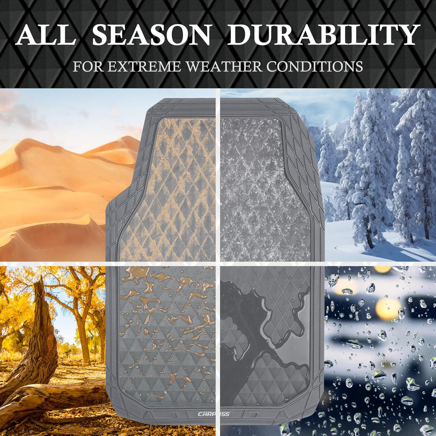 CAR PASS Gray Rubber Car Mats, All-Weather Floor Mats Full Set Durable Anti-Slip 3D Rhombus Waterproof Automotive Pad Trim to Fit Liner Universal Fit for Sedan SUV Truck Van, 4 Pcs All Gray Rubber