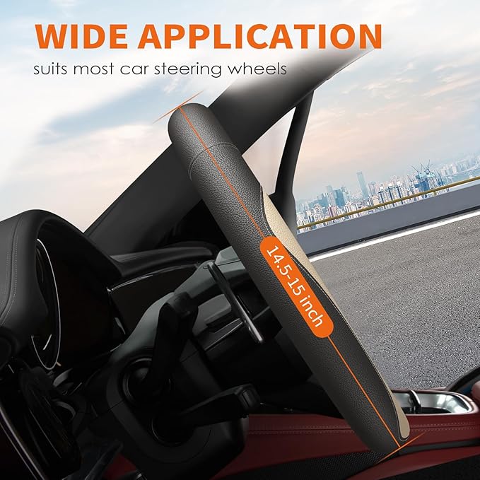 - WIDE APPLICATION: Featuring a universal size, HOTOR leather car steering wheel cover suits car steering wheel with a diameter of 14.5 to 15 inch(about 37 to 38cm). It's applicable to most cars like sedans, SUVs, and RVs.