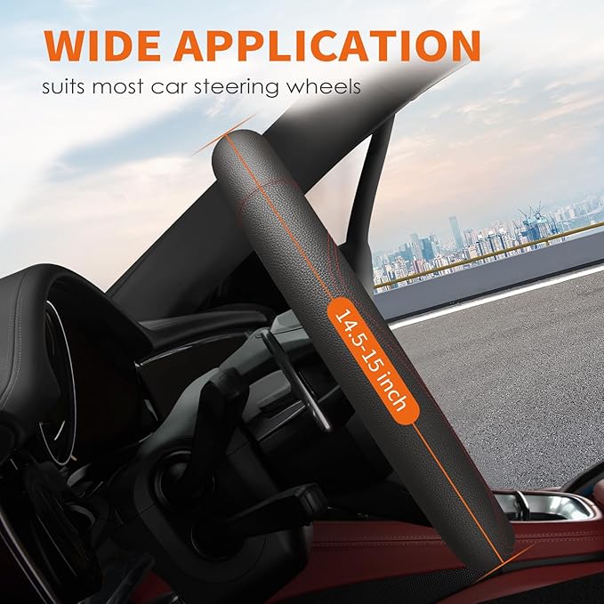 - WIDE APPLICATION: Featuring a universal size, HOTOR leather car steering wheel cover suits car steering wheel with a diameter of 14.5 to 15 inch(about 37 to 38cm). It's applicable to most cars like sedans, SUVs, and RVs.