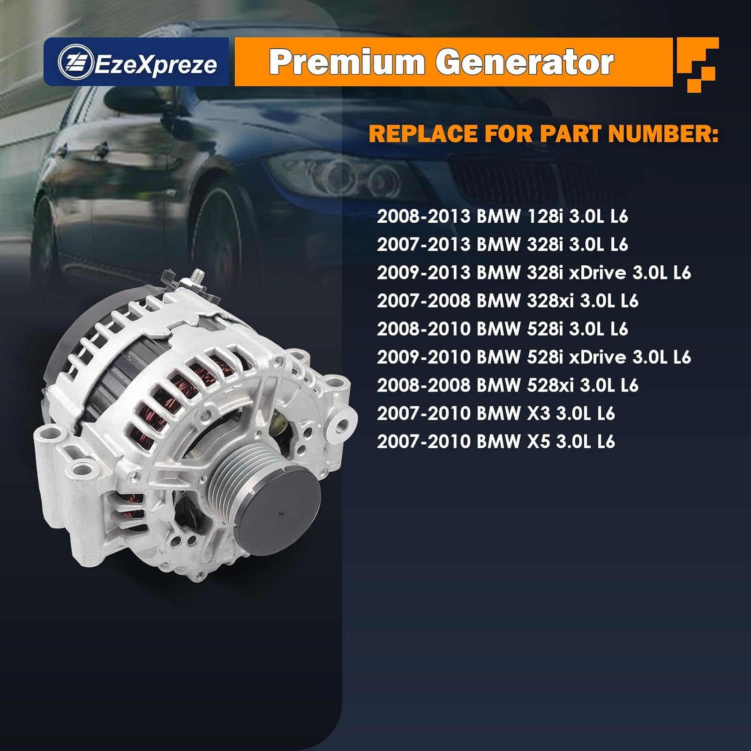 EzeXpreze Alternator for BMW 128i 2008-2013, 328i 2007-2013, 328i xDrive 2007-2008, 328xi 2008-2010, 528i 2009-2010, 528i xDrive 2008, 528xi 2007-2010 X3 X5, 3.0L L6, OE #12317555926 12317551256