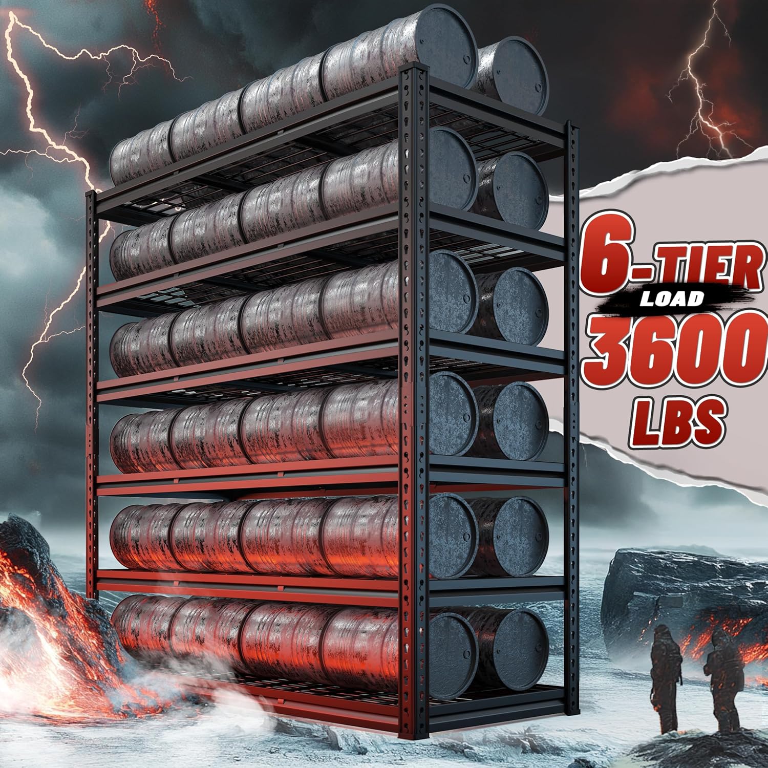 - ă3600LBS Capacity Storage ShelvesăThe REIBII garage shelving is made of premium steel material.Each sturdy shelf layer can hold up to 600 LBS for a total carrying capacity of 3600 LBS.The metal shelving has 2 support ribs and 4 stiffeners to avoid heavy deformation and bending of this storage shelves