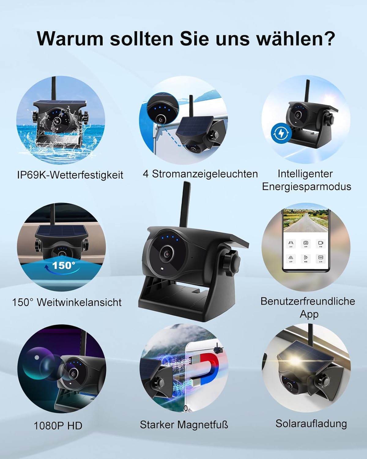 1080P Solar Wireless Backup Camera - Magnetic Hitch Rear Front Camera with Night Vision, 365-Day Standby, Waterproof, Rechargeable Battery for Horse Trailer RV Truck Car for Phone Pad Android