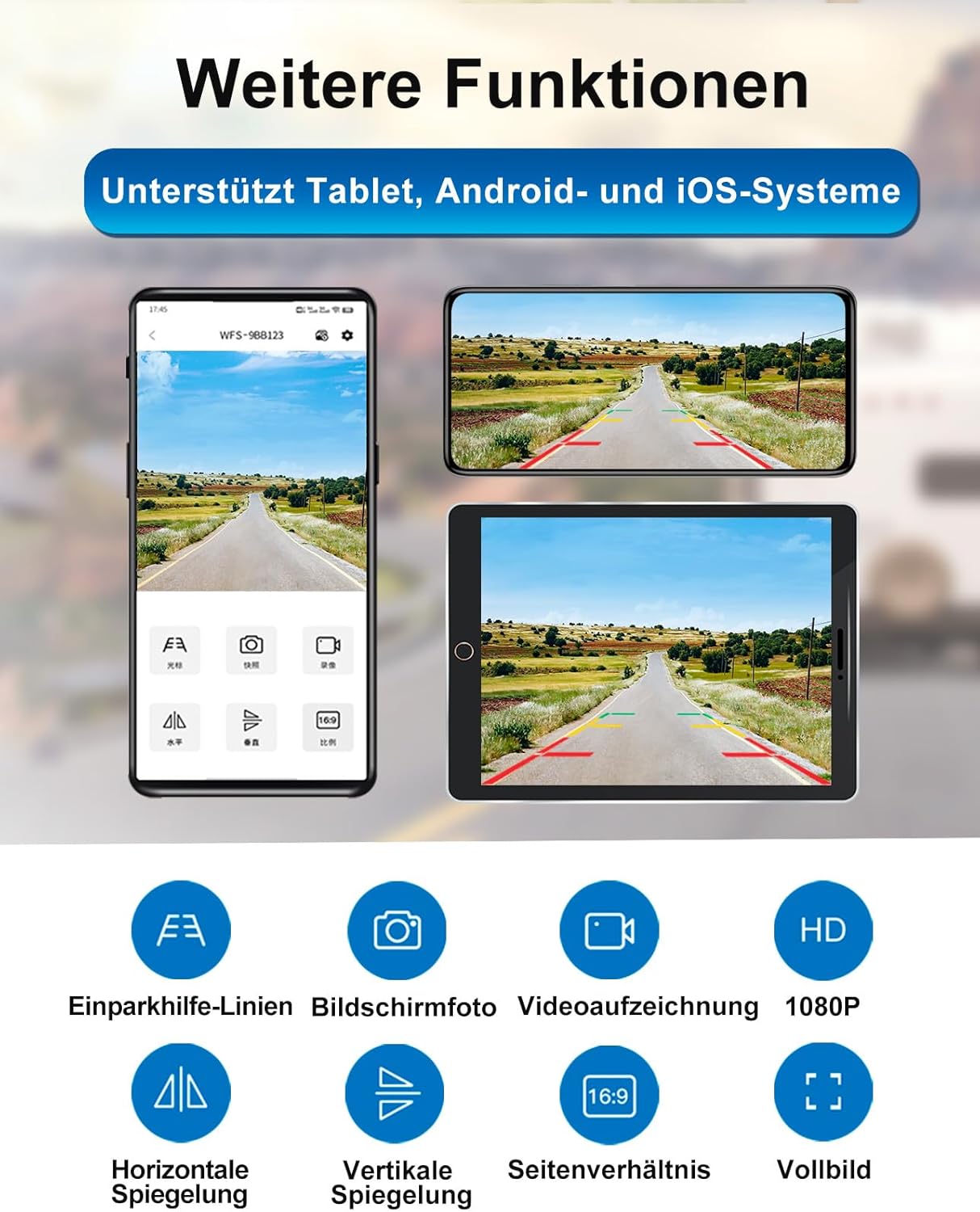 - ăStable WiFi Connectivity-197FTăEnjoy a stable WiFi connection up to 197 feet (60 meters) in open areas, ideal for vehicles up to 30 feet long. The robust connectivity ensures smooth, real-time monitoring, enhancing safety and convenience on the road