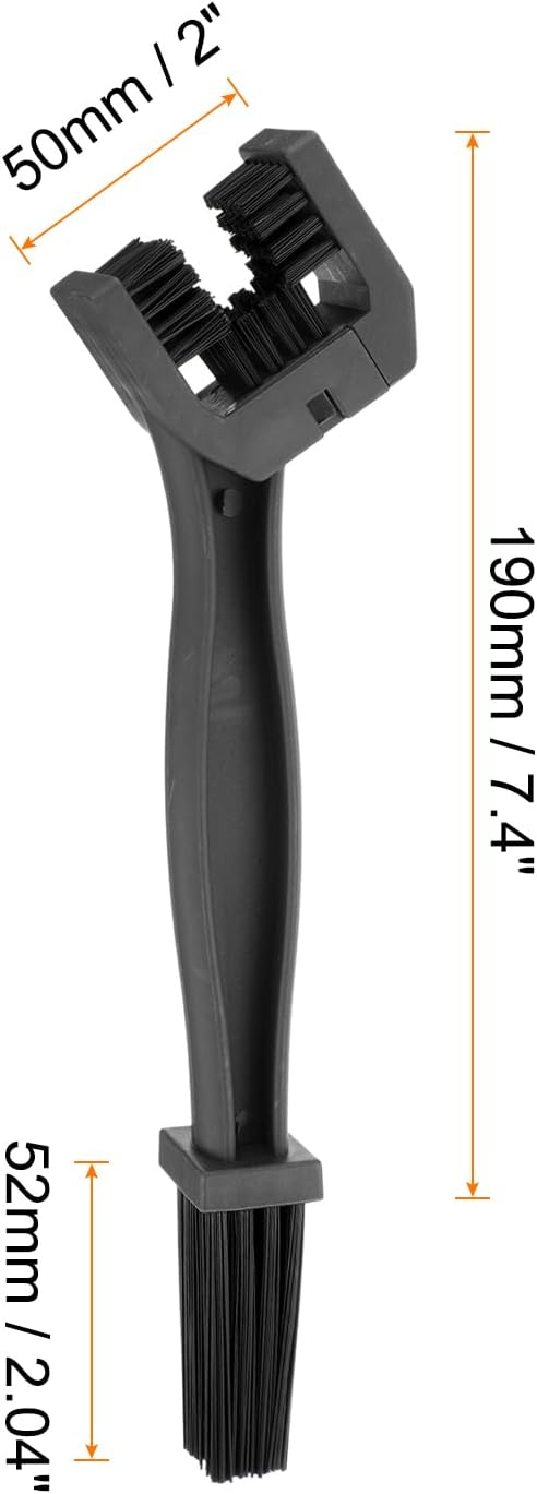 - Size - Total Length: 190mm / 7.4 inches; Brush Width: 50mm / 2 inches; Material: Polypropylene; Color: Black; 1pcs x Motorcycle Chain Brush