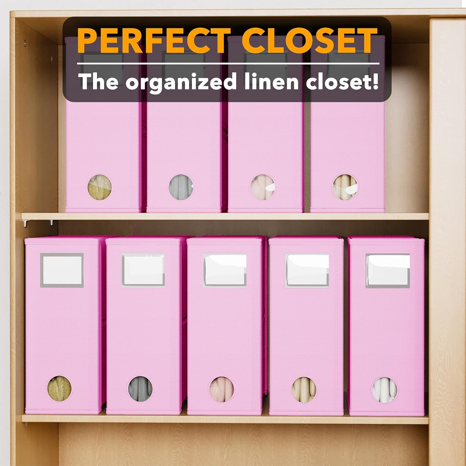 - 9 PACK PINK SHEET ORGANIZERS - Organize your linen closet with this foldable bed sheet fabric organizer; Each Storage Organizer SIZE: 5"W x 15"D x 12.8"H