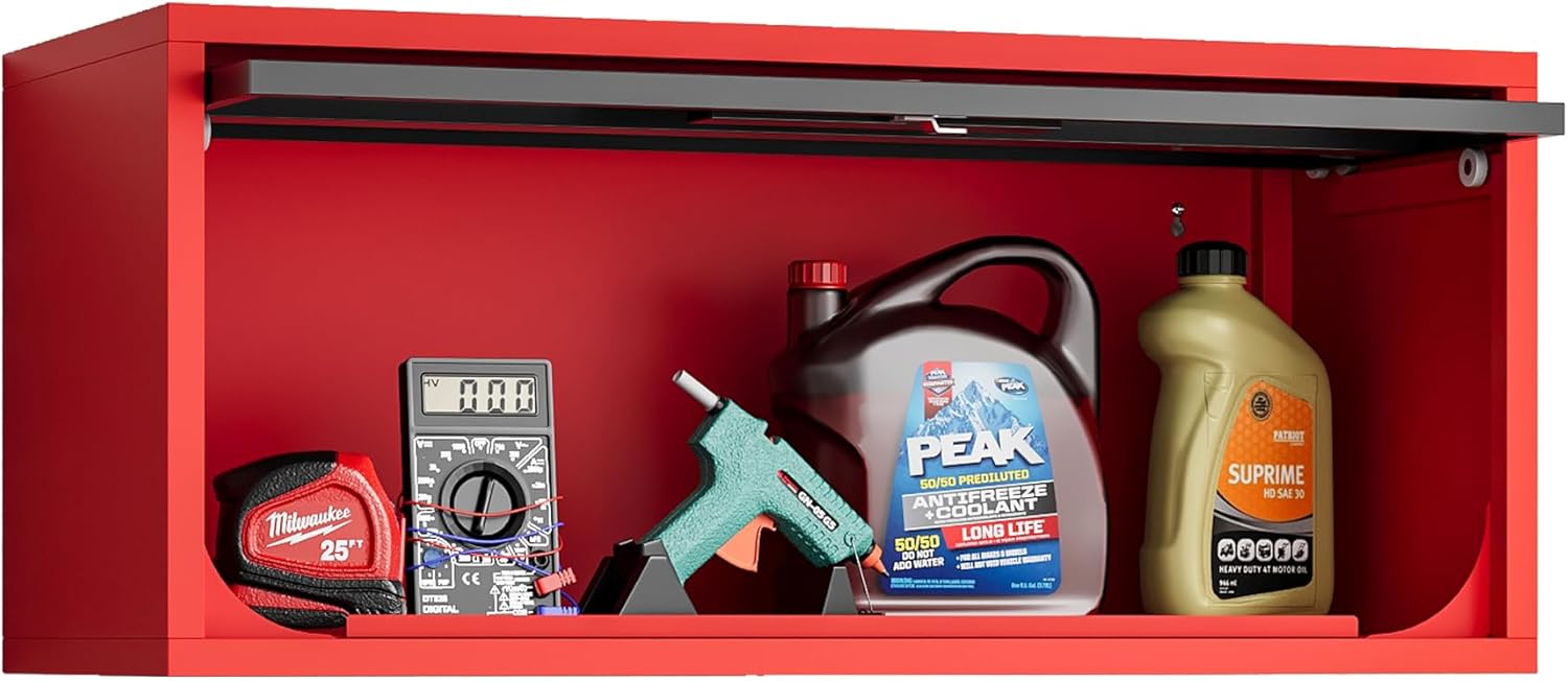 Metal Storage Cabinet Black&Red Wall Cabinets with Locking Door - Wall Mounted Storage Cabinet for Garage Warehouse Home Office - Assembly Required
