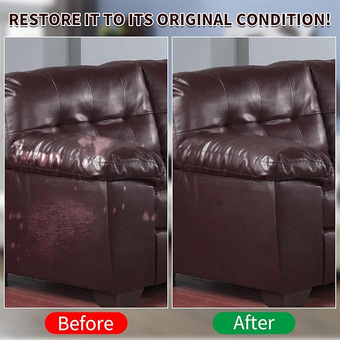 - Leather Stain Remover: Our leather color restorer eliminates wear and tear signs on your cherished leather and vinyl items.Leather paint helps you get rid of unsightly stains and faded hues,and restore color to their faded sofas,enhancing durability and preserving your leather items' natural luster