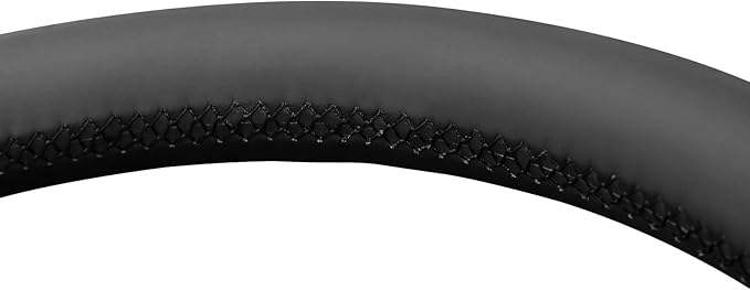 - The top and bottom of the cover is made from black smooth artificial leather, the left and right side are made from black hexagon embossed artificial leather, this steering wheel cover features with soft texture, durability, and exquisite look. Elevates the interior of your car. Perfect fitment and does not add excess bulk to the steering wheel