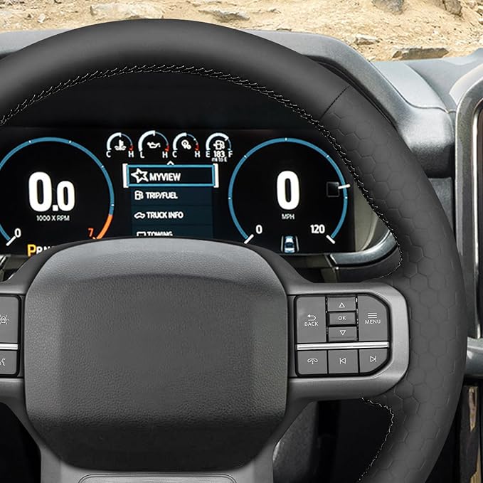 MEWANT DIY Black Solid Hexagon Embossed Faux Leather Steering Wheel Cover for Ford F150 Lightning F350 2024 Expedition