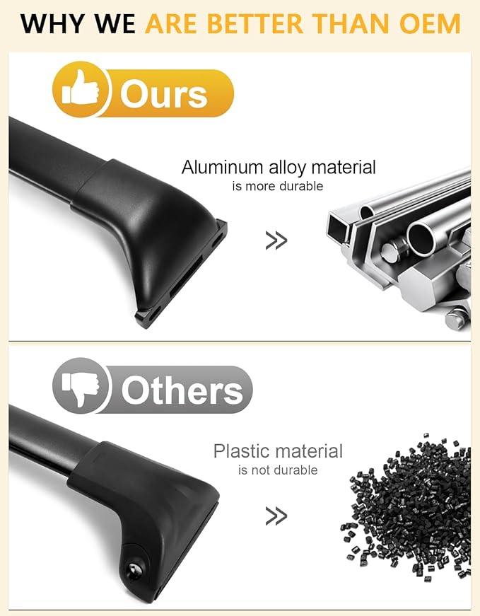 - 【Beats Original OEM】High-grade aluminum alloy crossbars can support luggage, ladder or cargo,roof rails can support a weight of 220 lbs (100kg).