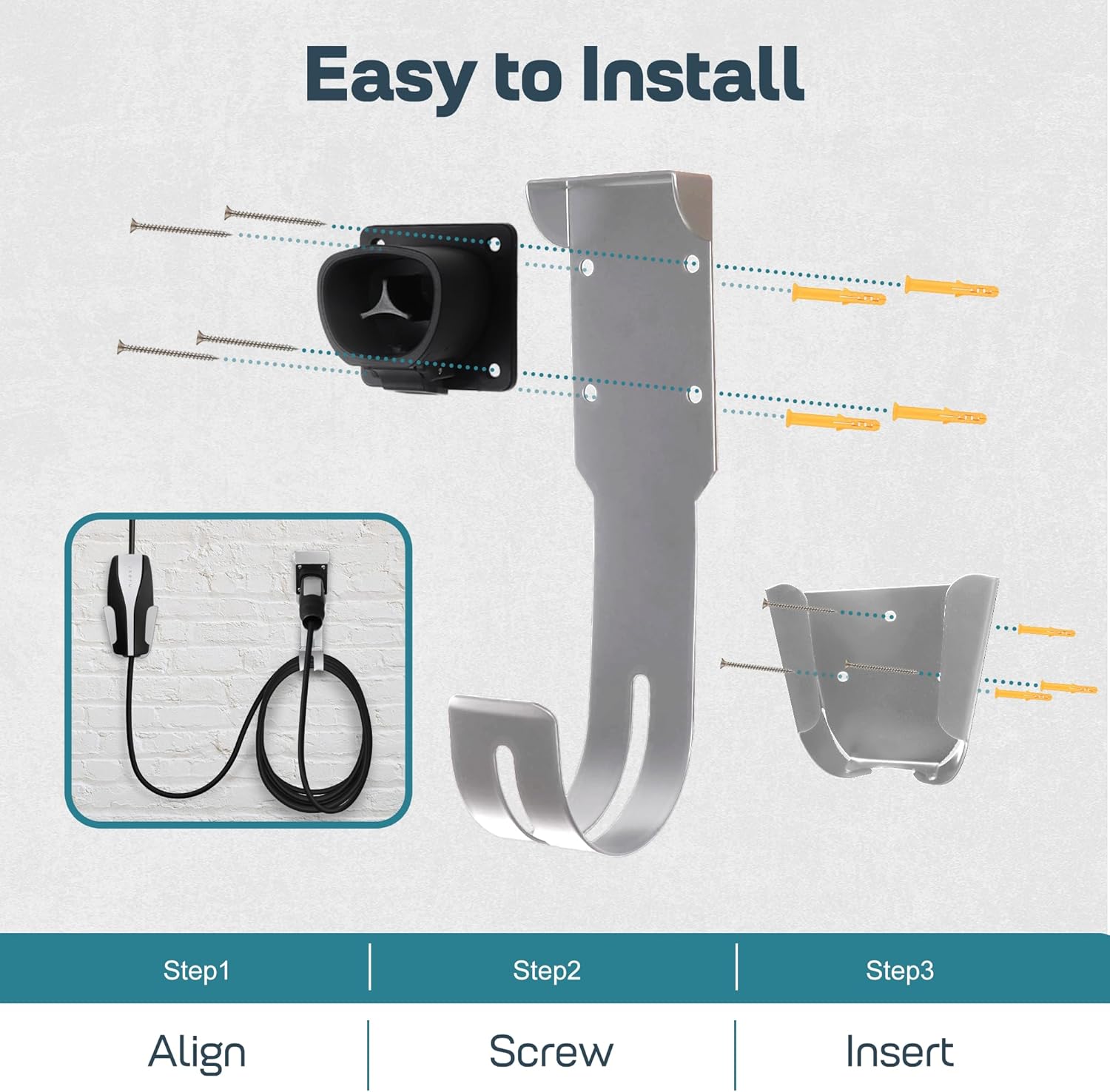 - 【Efficient Space Utilization】Maximizes your garage or parking area by neatly organizing the charging gun and cable, maintaining a clean and organized environment.