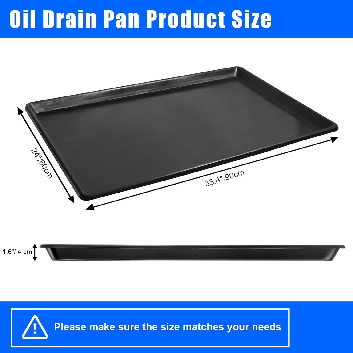 - Extra Large Size: The car oil drain pan measures approximately 35.4 x 24 x 1.6 inches/90 x 60 x 4 cm, the extra large size and rim height can hold up to 2 gallons of oil or liquid, this drain pan can effectively collect motor oil, reduce oil leaks and staining your floor. Before purchasing, please make sure the size matches your needs