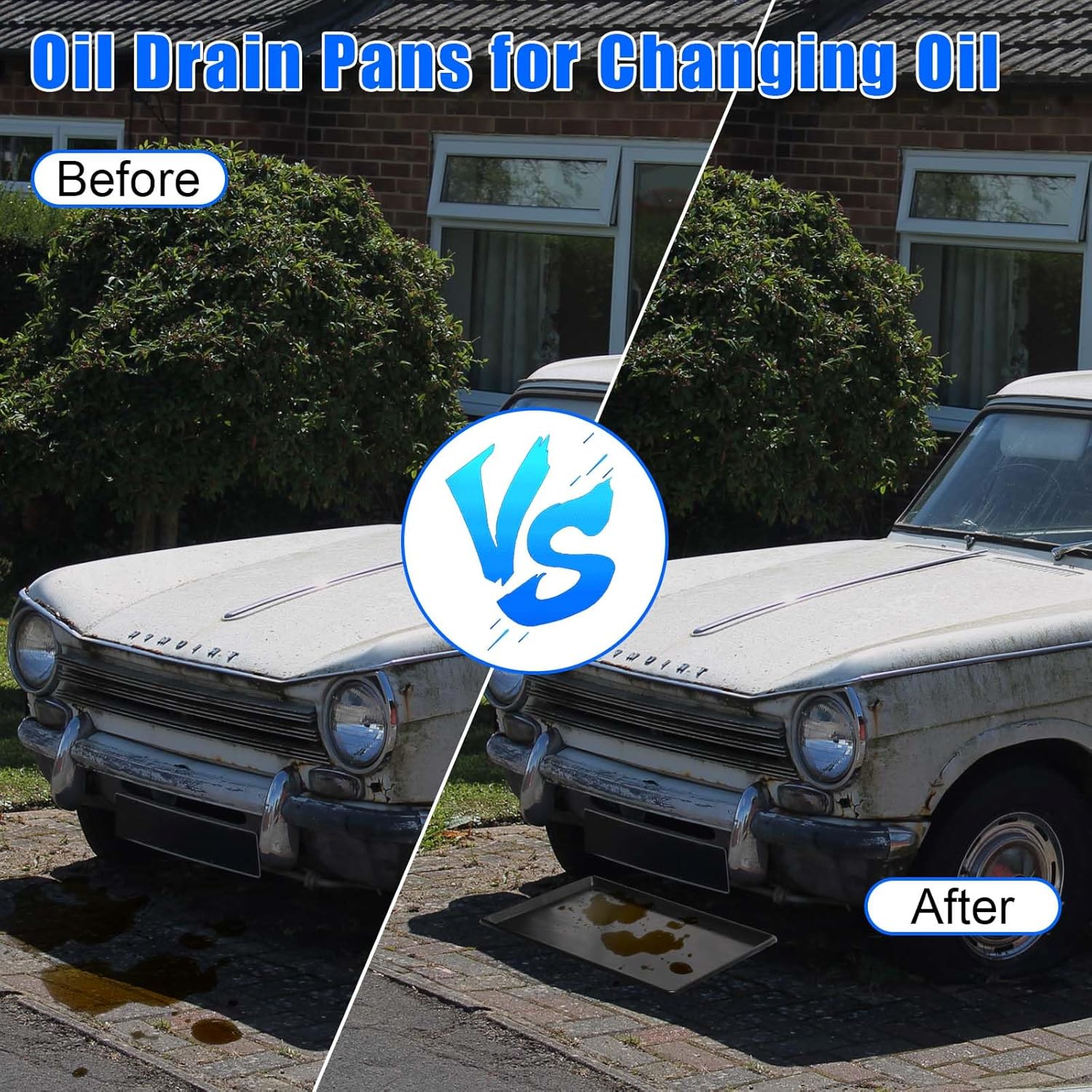 - Rounded Corner Design: Oil drain pan thickened rounded corner design has smooth and burr-free edges, ensuring a longer service life for the tray and avoid you from getting hurt during work. Oil drip tray also keeps the floor of your garage, driveway or car showroom safe and clean from oil and other liquid