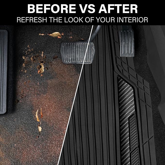 - 【Premium Rubber Material】This all weather black car floor mats are designed with premium quality rubber and aluminum film splicing, combining durability and fashion, providing your car with long-lasting protection and enhancing the aesthetics of your car.