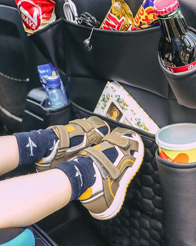 - KID-FRIENDLY STORAGE. Back of seat organizer for kids keeps toys, snacks, and coloring essentials within reach, making long drives calmer and more fun. Road trip activities for kids have never been easier to arrange!