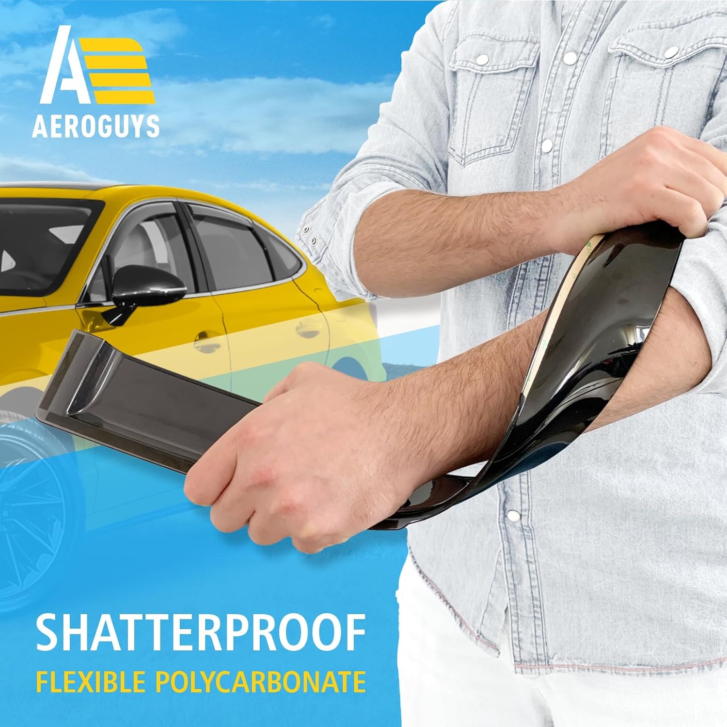 - Incredibly Durable AEROGUYS Auto Window Deflectors β They are made with strong and tough polycarbonate which is clear and scratch-resistant. They also provide UV protection making your ride more comfortable under all weather conditions.