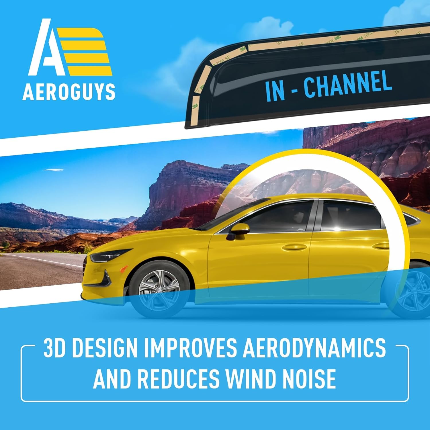 - No Tools Needed, Quick and Easy Assembly β These rain guards are very easy to fit. IN-CHANNEL INSTALLATION provides perfect fit for your car. Just slip it onto your carβs window and your job is done within minutes. There is no drilling or no tools required. Be sure that AEROGUYS window deflectors are water resistant, sun protective and will not bend, break or crack regardless of the weather conditions.