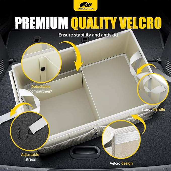 MIKKUPPA Car Trunk Organizer - 65L Collapsible Trunk Organizer with Lid, Sturdy Car Storage for SUV Auto Truck Van with Adjustable Straps and Non Slip Bottom (White)