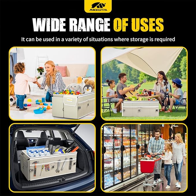 - [MULTI-FUNCTION USE]: You can use the trunk organizer for car in different scenarios, bringing more convenience to your life. It can be used to store your clothes or daily necessities or it can play a key role in your picnic or camping, and more