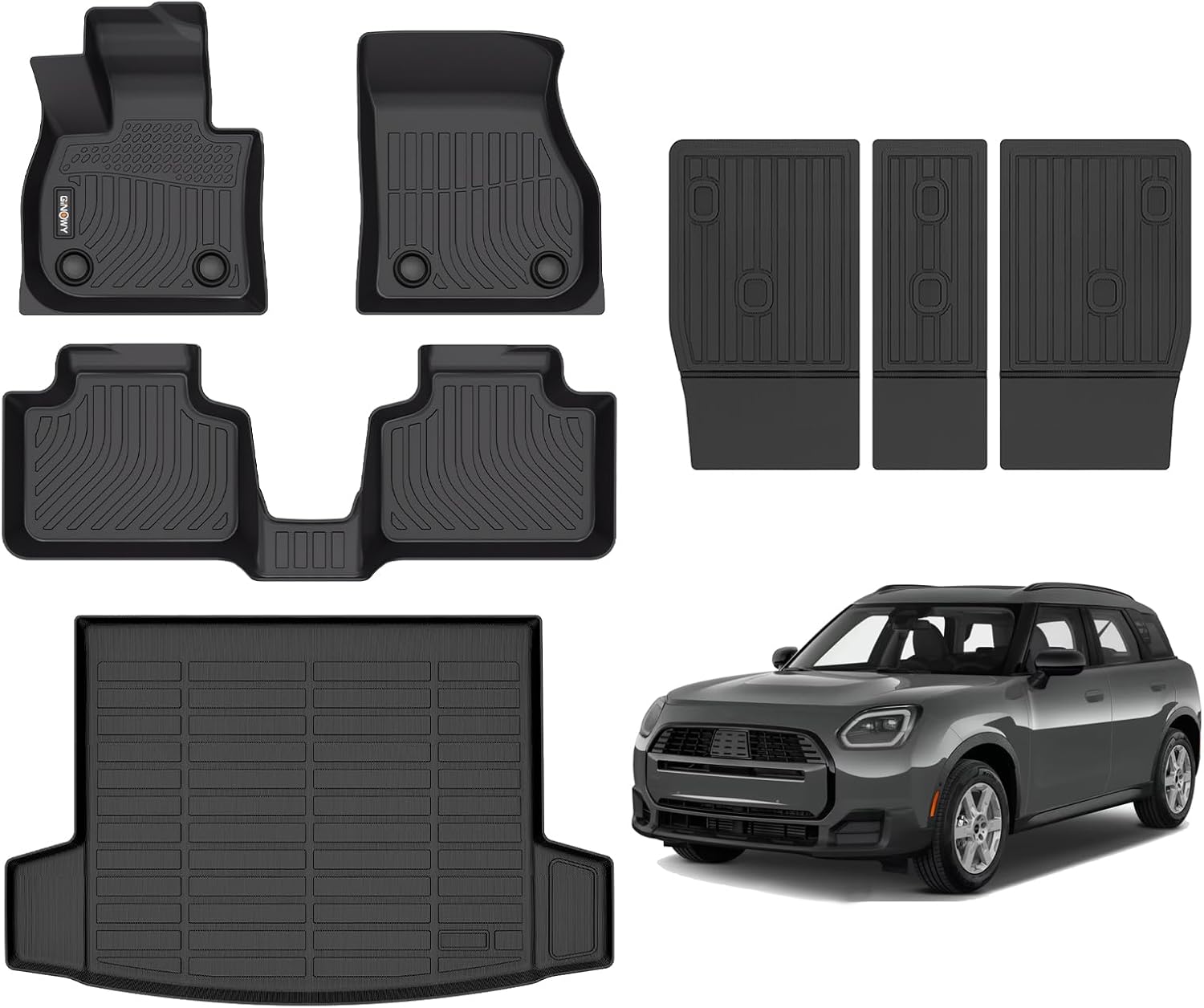 GINOWY-Floor Mats & Cargo Liner for Mini Countryman 2025(Not for SE&Electric), TPE All Weather Countryman Car Mats Non-Slip Trunk Mat Floor Liners Waterproof Accessories Mats Black