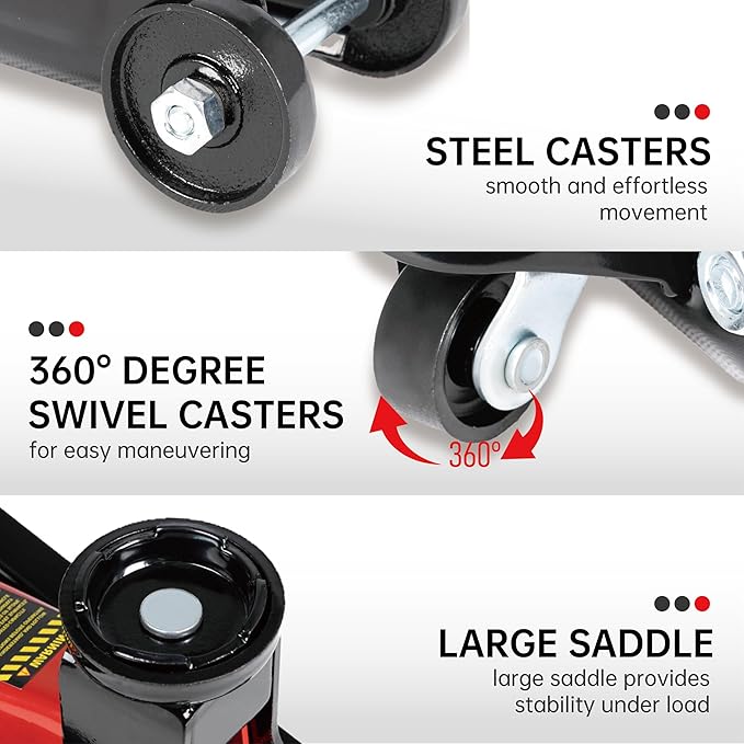 - Enhanced Stability and Safety: Equipped with a secure lift saddle and a built-in safety valve, this floor jack prioritizes safety. The saddle provides stable support for the vehicle, while the safety valve prevents overloading and potential damage during operation.