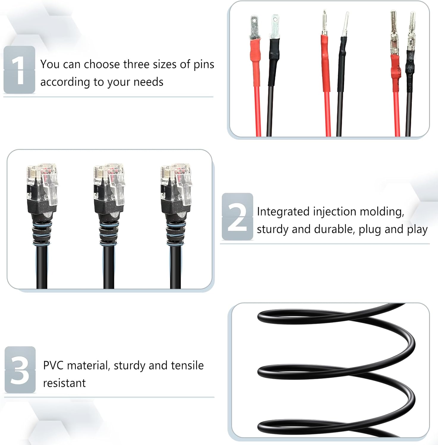 - wire body of the radar detection power cord is made of environmentally friendly PVC, which is non-toxic, odorless, highly flexible, and not easy to knot when wrapped casually, is sturdy and durable.