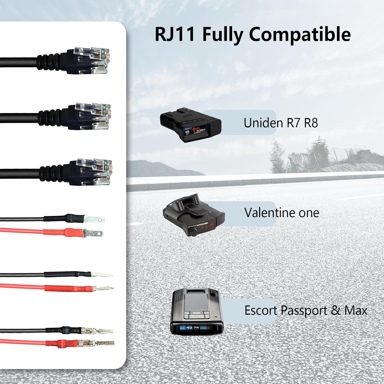 - The RJ11 mirror cable plug is injection molded in one piece, which is sturdy and durable, and can easily connect various types of radar detectors. It is compatible with Valentine One, Escort Passport, Uniden, Max, Max 360 and other radars.