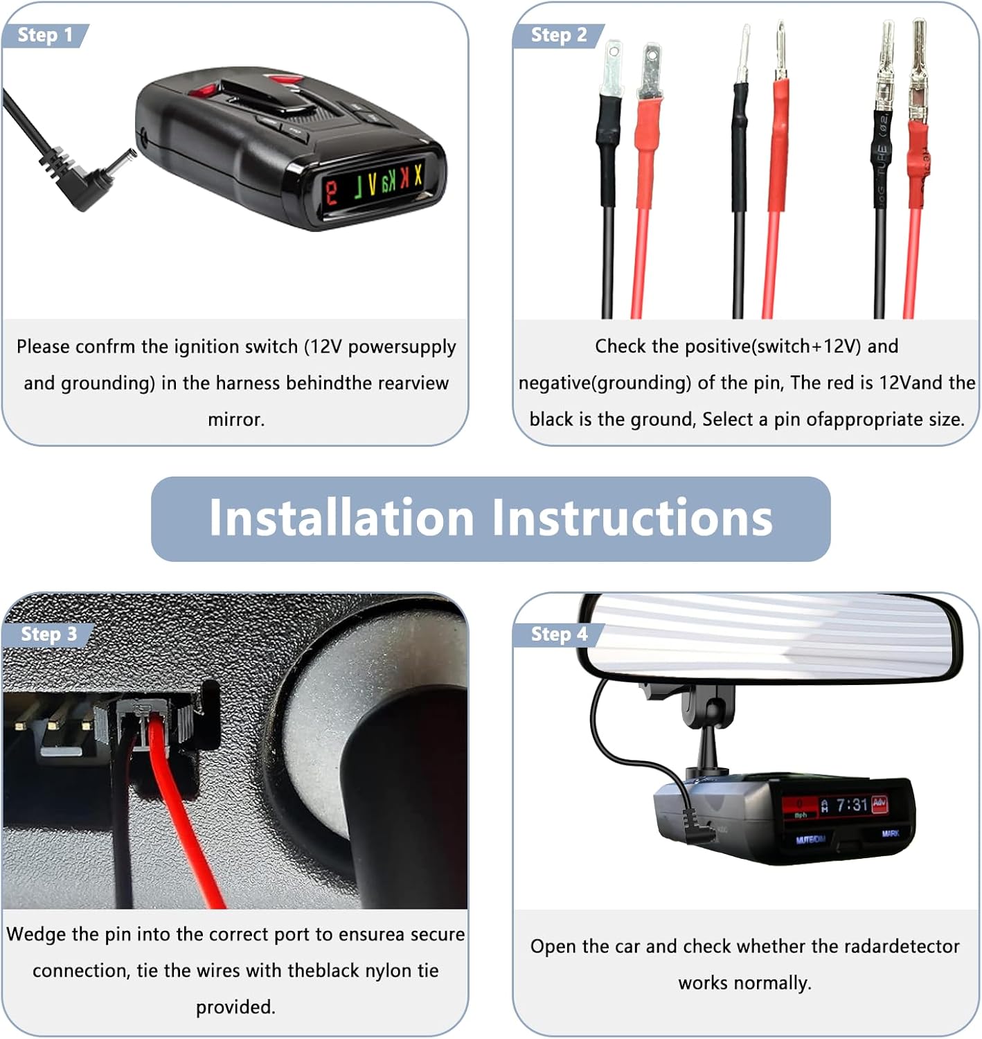 - radar detector hardwire power cord is 13.8 inches, and it is equipped with an upgraded magnetic ring that has a good suppression effect on high-frequency noise, allowing normal and useful signals to pass through well, The attached zip ties can keep the cable clean.