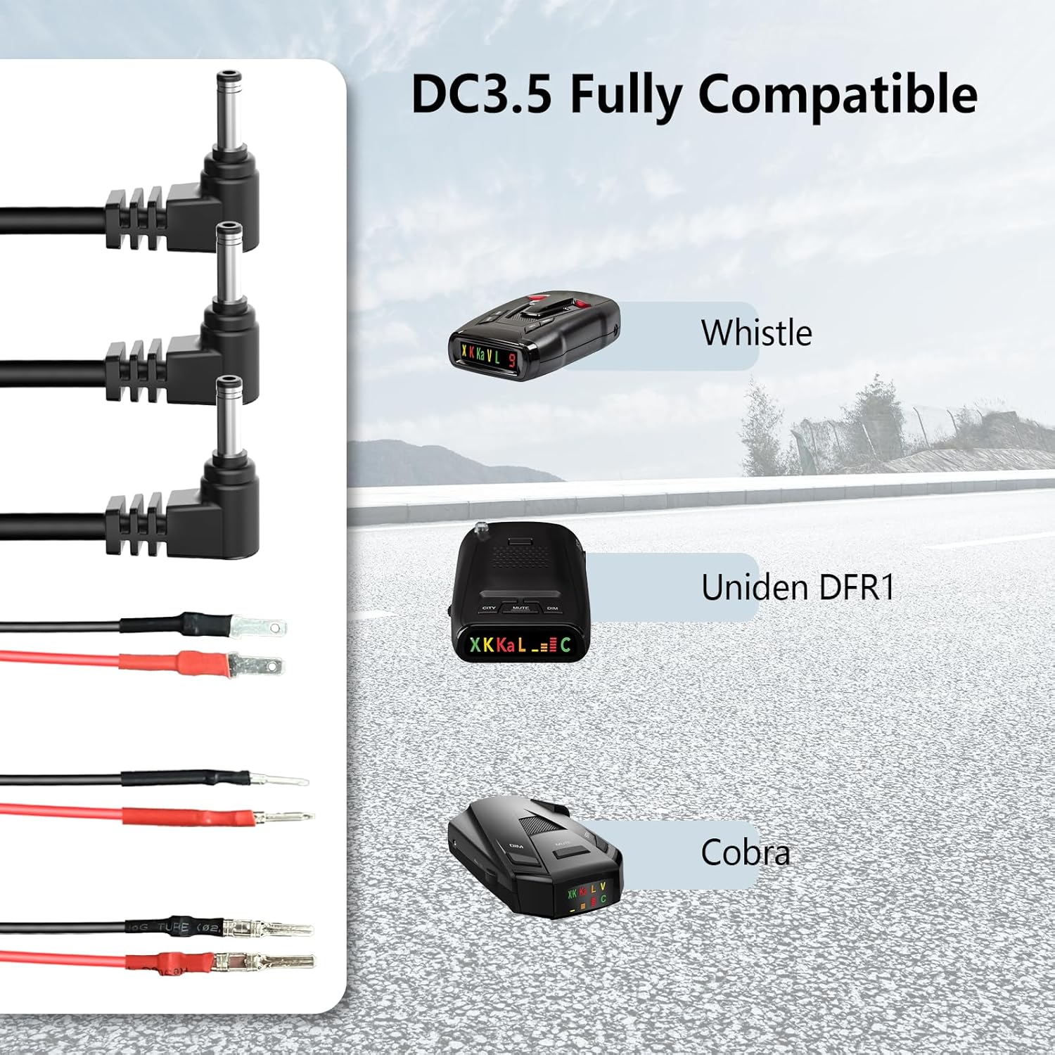 - DC3.5 mirror cable plug is injection molded in one piece, which is sturdy and durable, and can easily connect various types of radar detectors, It is compatible with Cobra RAD 350 380 450 480i XRS9370 XRS955 XRS5300 XRS7700, Uniden DFR1 DFR3 DFR5, and Whistler radar detector