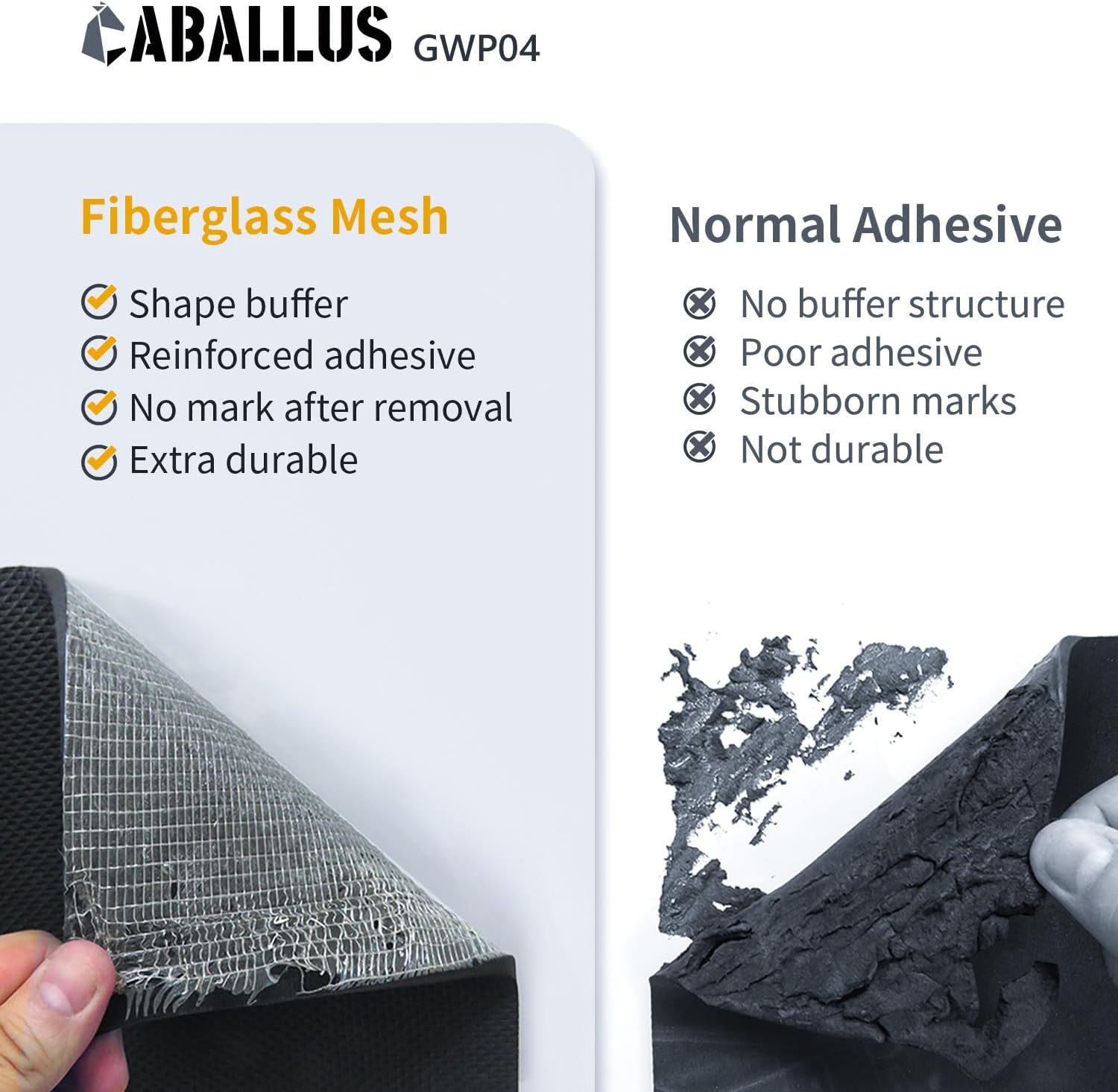 - Fiberglass Mesh Adhesive Structure – The adhesive force is reinforced by its unique integrated back adhesive structure. The interlaced fiberglass allows the wall protectors to be removed without tearing the soft protector or leaving marks on the wall. The non-tearing self-adhesive cover can be peeled off easily.