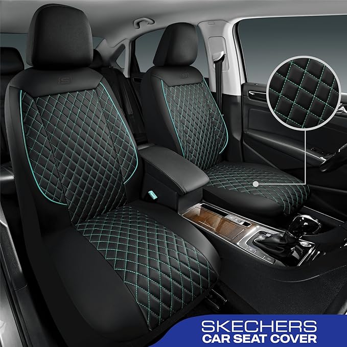 Skechers Car Seat Covers,Piping Luxury Faux Seat Covers,Waterproof Anti Slip Car Seat Protector Front Seats,Car Accessories Airbag Universal Fit for Most Cars,Vans,Trucks,SUV,Mint