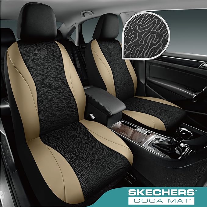Skechers Car Seat Covers,Leather Seat Covers with GOGA Mat Technology,Waterproof Car Seat Covers Front Seats,Airbag Compatible,Comfort Universal Fit for Most Cars,Vans,Trucks,SUVs,Beige