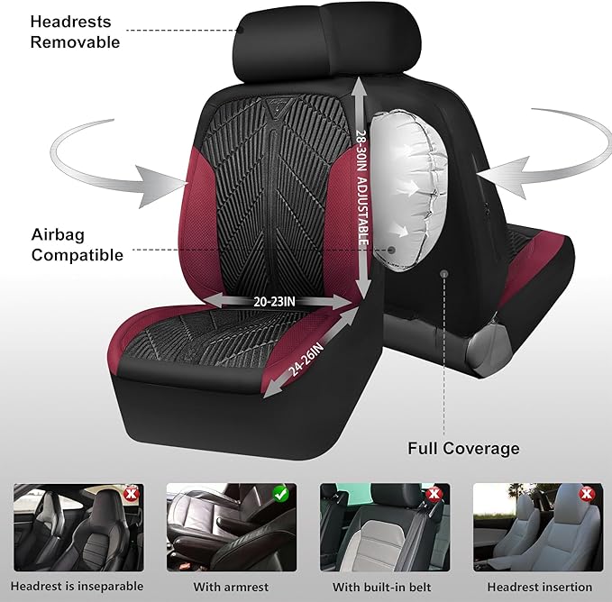 - 3D EMBOSSED DESIGN– Looks gorgeous and feels really nice when driving. Make your red car seat looks so different than others. Get the compliments by using our burgundy car seat covers now