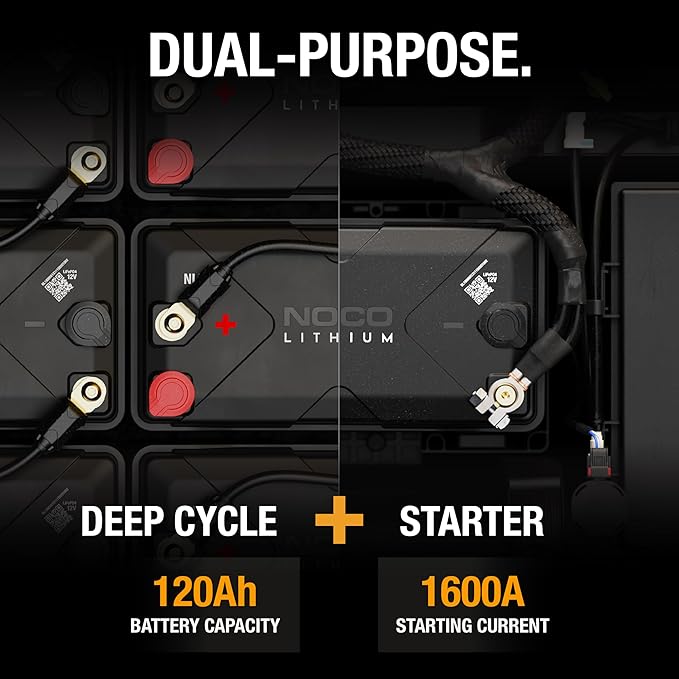 NOCO Lithium NLX31: 12V LiFePO4 Lithium Battery — Dual-Purpose — 120Ah Deep-Cycle + 1600A Group 31 Starter Battery — For Auto, Car Audio, Marine, Boat, RV, Off-Grid, Camper — UL Listed