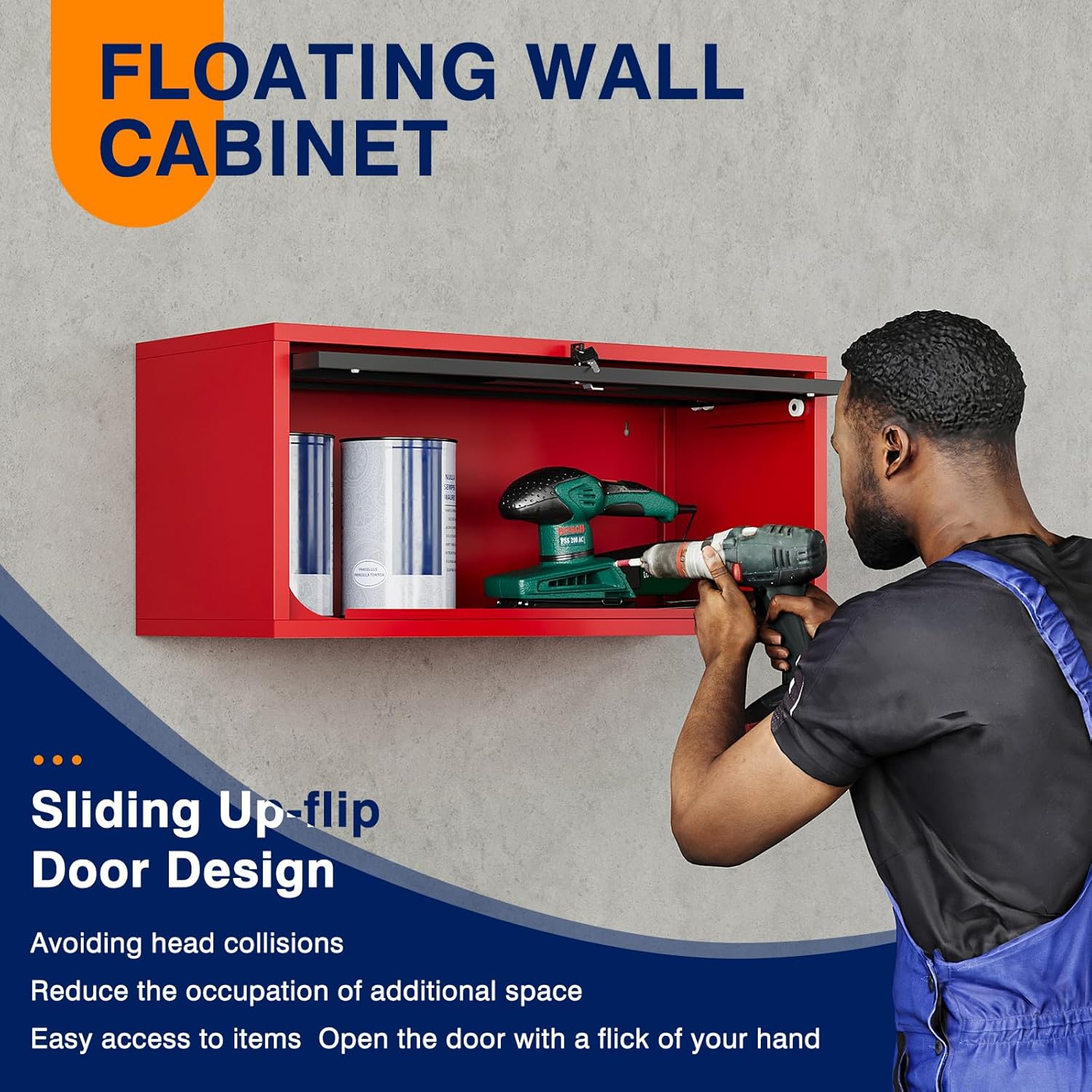 - 『SLIDING Up-Flip DOOR』 Yizosh wall cabinet features a special opening and closing door design. Sliding Up-Flip door allows you to open the door easily and frees up your hands to access the item in the cabinet more conveniently. The door can slide into the cabinet, which can prevent accidental head-banging