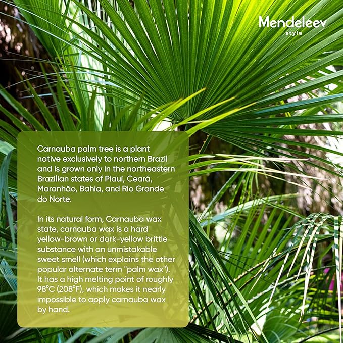 - Carnauba Wax also called Brazil wax and palm wax, is a wax of the palm Copernicia prunifera. It has an ideal gloss and moisturizing effect.