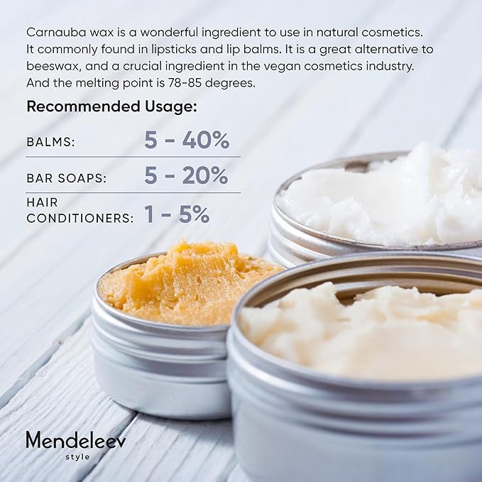 - It is worth noting that Carnauba Wax is harder than beeswax, and has a higher melting point, so your formulation may need some adjusting to accommodate the change in wax ratios when adding it to existing formulations.