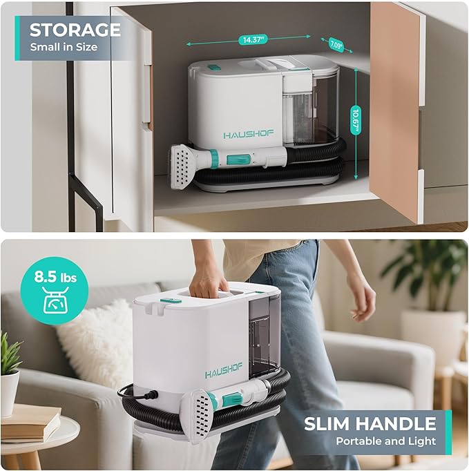 HAUSHOF Portable Carpet Spot and Upholstery Cleaner Machine, 13Kpa Powerful Suction & Spot Remover, Deep Stain Cleaning for Rug, Carpet, Car Seats, Pets, Stairs, Couches, with Cleaning Solution