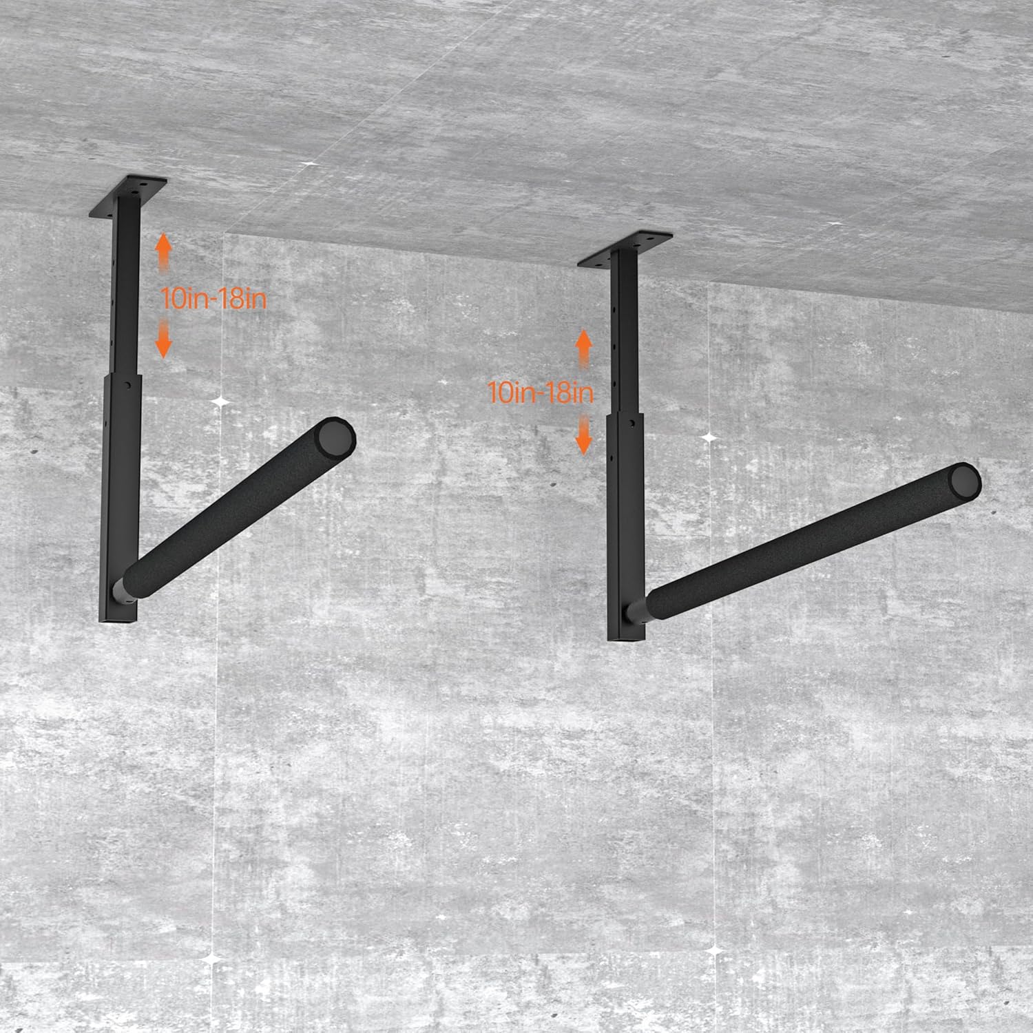 - ADJUSTABLE HEIGHT FEATURE: With its adjustable height, this overhead garage storage rack can fit ladders ranging from 10 to 18 inches, ensuring a perfect fit and versatility for any size equipment in your garage