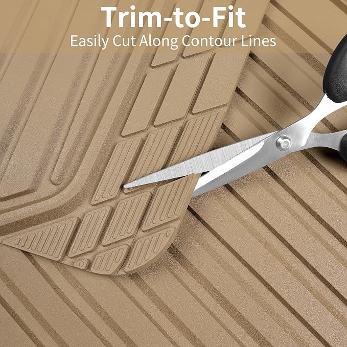 - 【Trimmable Universal Fit】 The pure tan car floor mats were designed to fit most cars,vans and SUVs,there are cuttable lines on the sides of the car mats, and these floor mats are made of flexible material that molds to the shape of your car's interior, providing a semi-customizable fit.