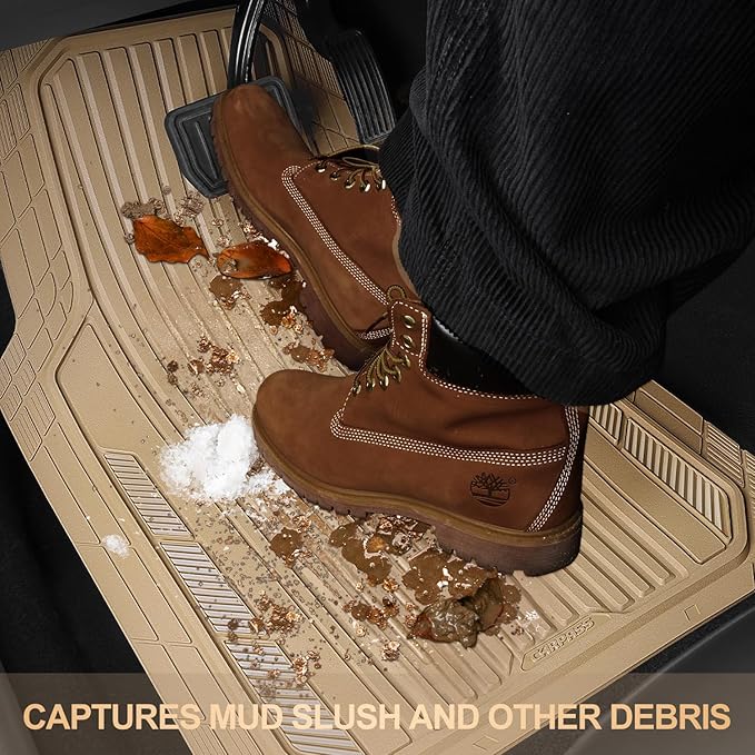 - 【All Weather All Season Protection】CAR PASS heavy duty rubber solid beige car mats use for all season.Ridge channels specifically design to prevent fluids from leaking onto carpets,the deep channels also trap any mud, dirt, water or snow that gets in your car.