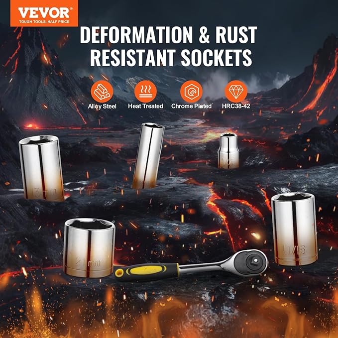 - Exceptional Durability: Made from high-performance alloy steel and heat-treated, this mechanic tool kit resists wear and deformation even after years of use. The chrome-plated finish provides excellent corrosion resistance, ensuring the tools can withstand tough tasks and harsh work environments.