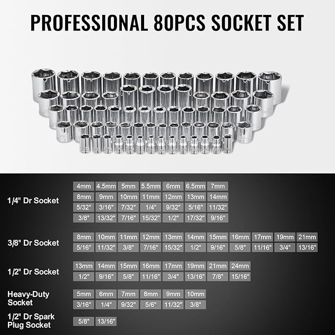 - Professional Ratchet Handle: Our mechanic tool set features a handle with a quick-release button for easy socket changes. The reversible design makes tightening and loosening bolts effortless, saving you time and energy. The 72-tooth ratchet ensures smooth and efficient operation.