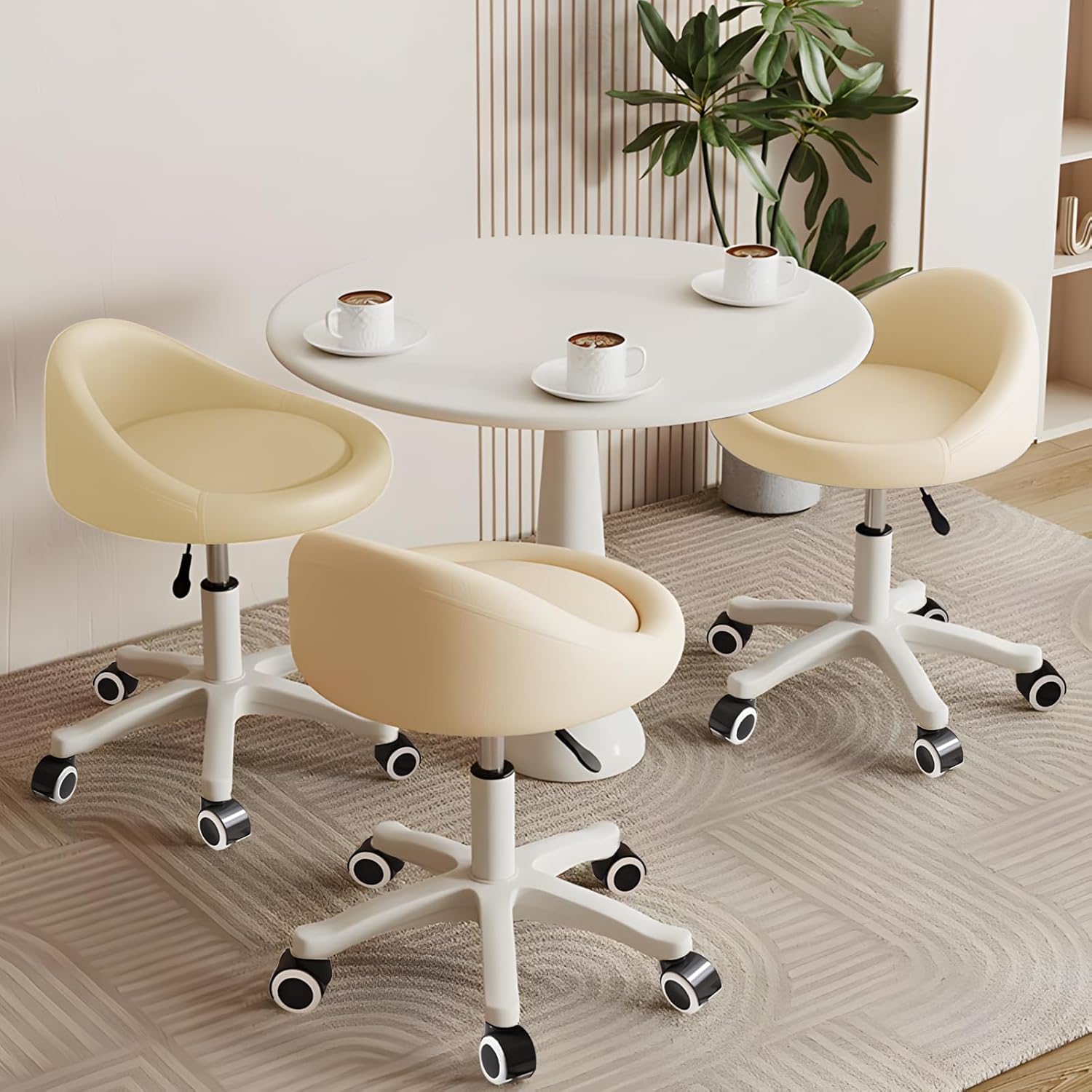 Rolling Stool Set of 3 Rolling Hydraulic Salon Stool with Low Backrest - Adjustable Swivel Chair for SPA, Shop, Salon, Massage, or Medical Office Beige