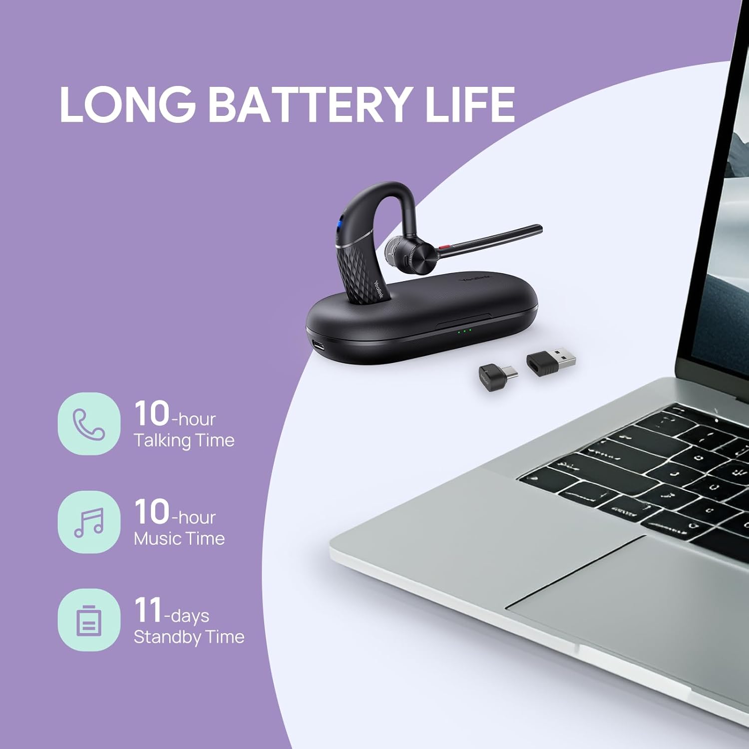 Yealink Bluetooth Headset BH71 Pro,Teams Zoom Certified,Single Ear Wireless Headset with Charging Case,Bluetooth Earpiece with Noise Canceling Mic,Type-C/A USB Dongle,Connect Mobile/Mac/PC,