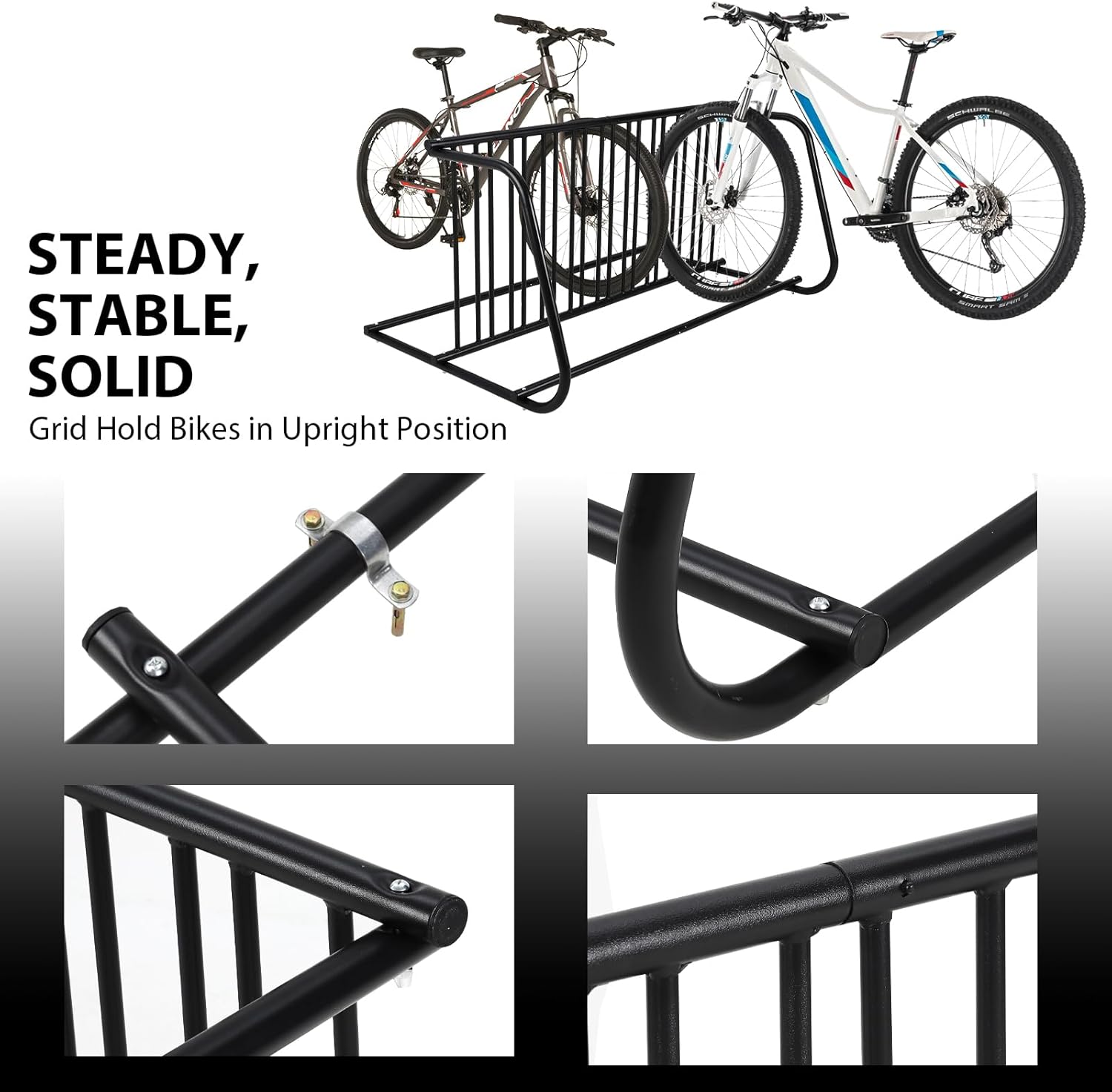 - PREMIUM 100% STEEL: This floor bike rack is made of premium powder-coated galvanized steel tube, resistant to scratch, wear, corrosion and rusk. Thickened tube has a stronger load-bearing capacity and wonโt bend or damage easily